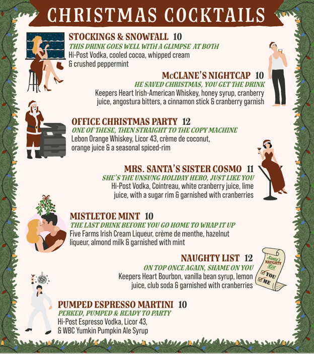 Taste the season and tickle the senses as you make new holiday memories over a brand-new Christmas Cocktail! Now available at all three locations for a limited time, these cocktails set the mood for a dazzling date night, girlfriend gift exchange, or a post-party perk!